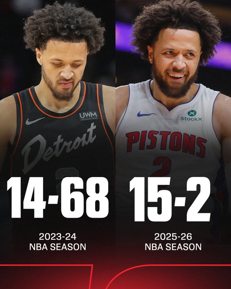 2025-11-25 16:17:16脱胎换骨!本赛季活塞已拿到15胜 两年前他们整个赛季14胜68负