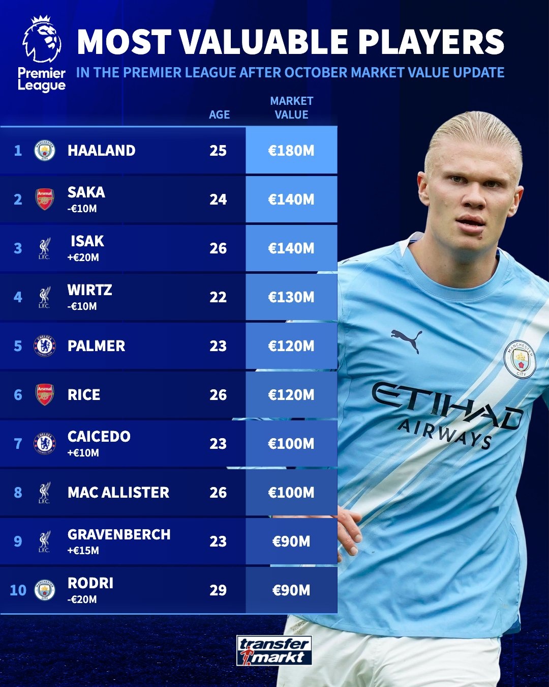 2025-10-18 00:58:53英超身价更新:伊萨克1.4亿欧,维尔茨跌至1.3亿,凯塞多涨至1亿