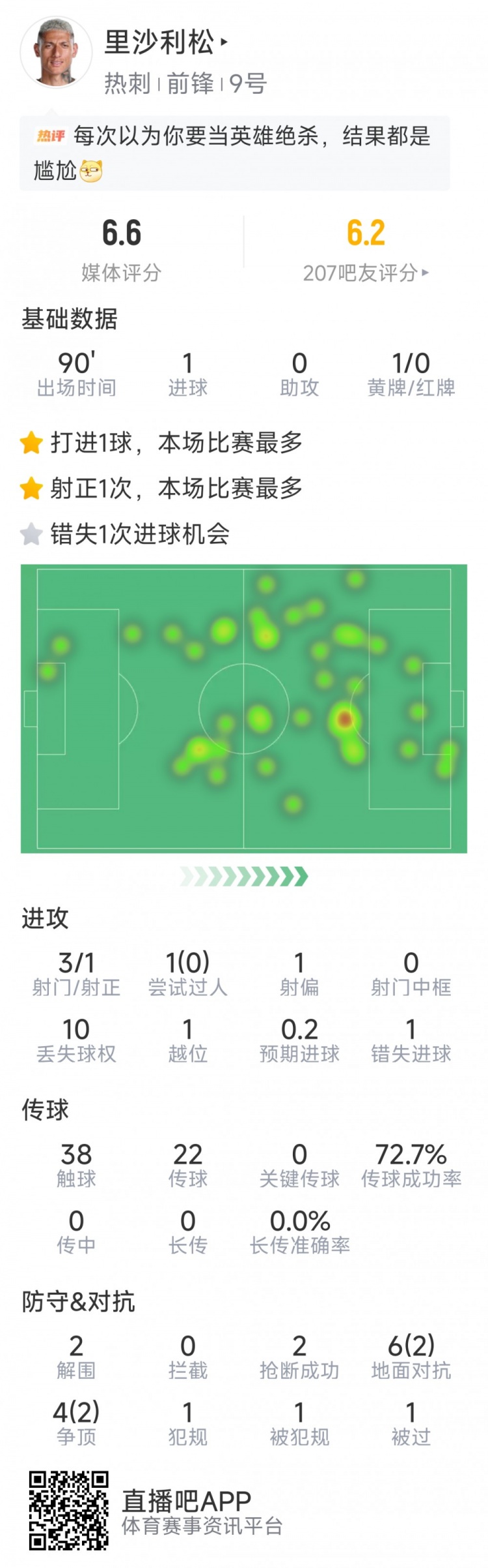 2025-11-09 00:02:48里沙利松本场数据:1粒进球,3射1正,2次抢断,1次错失良机